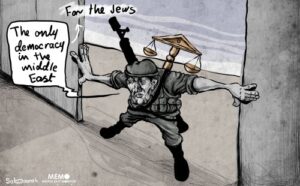 Israele approva la legge sullo stato-nazione diventando ufficialmente uno stato di apartheid – Cartoon [Sabaaneh/Middle EastMonitor]