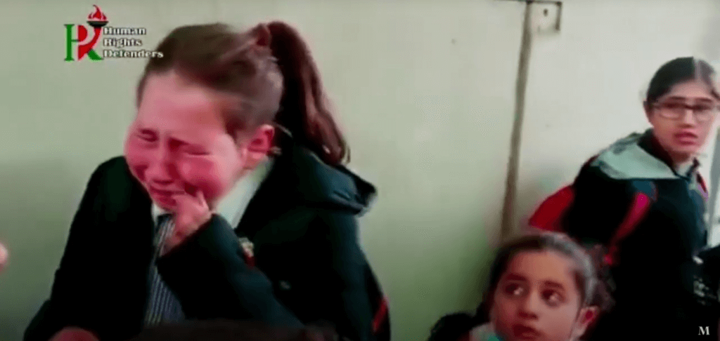 L’ingresso e l’uscita del posto di blocco sono stati chiusi, trasformando i bambini in ostaggi. I bambini piangevano ed erano spaventati.