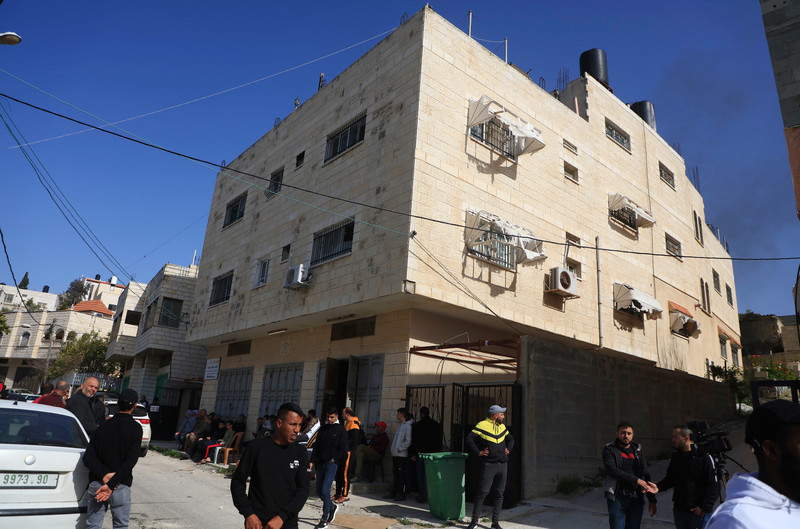 La casa della famiglia di Dia Hamarsheh, che ha effettuato una sparatoria a Bnei Brak, durante un raid dei soldati di occupazione israeliani nella città occupata di Jenin in Cisgiordania il 30 marzo 2022. Ahmed Ibrahim APA images
