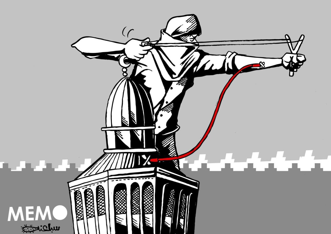 Oltre 150 palestinesi feriti mentre la polizia israeliana assalta Al-Aqsa – Cartoon [Sabaaneh/Middle East Monitor]
