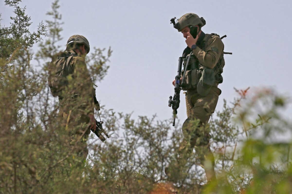 Soldati israeliani sono posizionati vicino alla città israeliana settentrionale di Metula lungo il confine con il Libano il 25 aprile, 2022 [JALAA MAREY/AFP via Getty Images]
