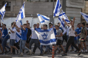 Tuttavia, a partire dall’inizio della giornata, i nazionalisti ebrei vagavano per la Città Vecchia e il complesso della moschea di al-Aqsa sotto la pesante protezione della polizia, sventolando bandiere e cantando.