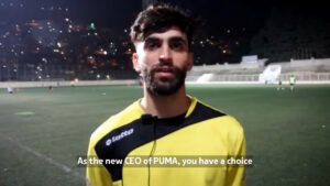 I giocatori del Balata FC al nuovo CEO di PUMA: fai la scelta giusta. Poni fine alla complicità con l’apartheid israeliano.