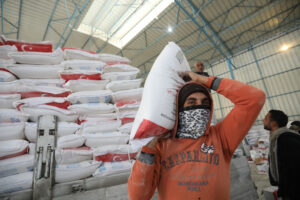 Lo staff dell’UNRWA prepara razioni di cibo per i rifugiati a Gaza City nel gennaio 2022. Immagini Ashraf AmraAPA