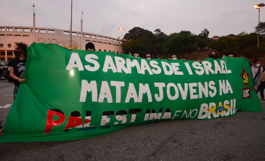Gli striscioni dei movimenti progressisti brasiliani che chiedono un embargo militare su Israele perché “le armi israeliane uccidono in Palestina e in Brasile” non sono mai stati così rilevanti e urgenti come lo sono oggi.
