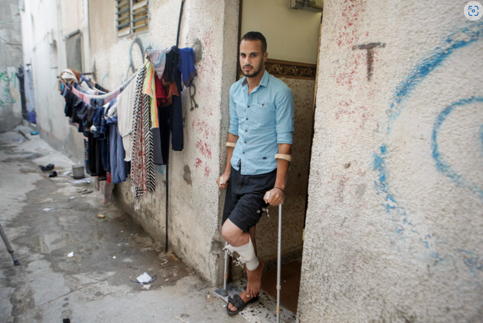 Il 33enne laureato in economia aziendale non è in grado di muoversi molto durante le calde giornate di agosto a causa del dolore intenso derivante da un infortunio riportato quando gli hanno sparato durante le manifestazioni al confine di Gaza con Israele, nel 2018.