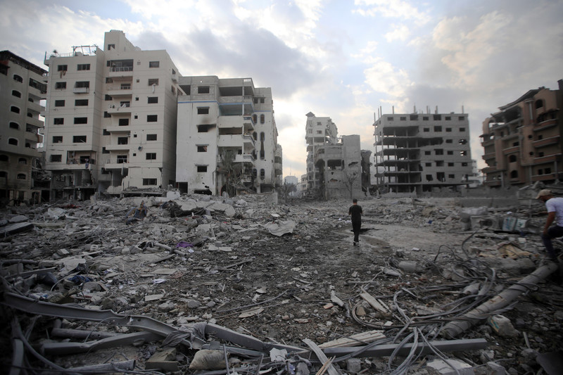 Distruzione nel quartiere al-Rimal di Gaza City dopo il bombardamento a tappeto da parte di Israele, il 10 ottobre. Mohammed ZaanounActiveStills