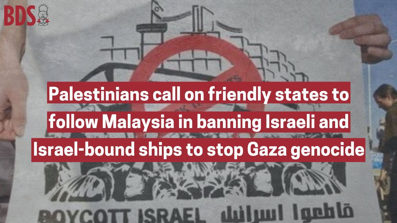 I palestinesi chiedono agli stati amici di seguire la Malesia nel bloccare le navi israeliane e dirette in Israele per fermare il genocidio di Gaza