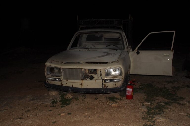 Masafer Yatta: Coloni israeliani bruciano l’auto di una famiglia a Um Dhorit