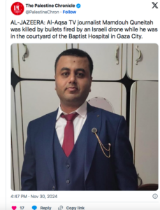 I lavoratori, Azem Abu Daqqa, Ahed Azmi Qudaih e Muhammad Adel Al-Namla, viaggiavano su un veicolo contrassegnato con il logo dell’organizzazione quando è stato preso di mira vicino a Salah al-Din Street, a nord-est di Khan Yunis.