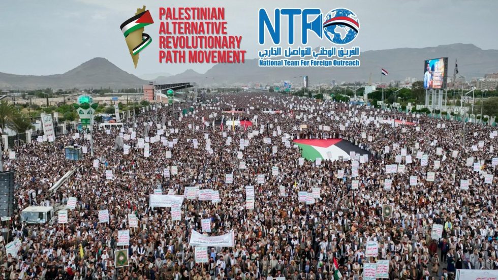 Noi del Team Nazionale per l’Apertura Estera e del Movimento Masar Badil: Palestinese Alternativa Rivoluzionaria, attraverso questa dichiarazione congiunta, invitiamo tutti i popoli liberi del mondo a sostenere la posizione del popolo yemenita, della sua leadership e del suo esercito. Rinnoviamo inoltre il nostro appello a porre fine all’aggressione e all’assedio imposti al popolo yemenita dagli Stati Uniti e dai suoi alleati, e invitiamo i popoli liberi a stringersi attorno alle chiare posizioni rivoluzionarie espresse dal popolo yemenita 24 ore su 24, nelle piazze e nelle arene pubbliche, affermando la loro determinazione e volontà, e che non si ritireranno, non si stancheranno e non si arrenderanno, ma rimarranno saldi nella loro posizione storica a sostegno del popolo palestinese oppresso e della sua eroica resistenza a Gaza e in tutta la Palestina occupata.