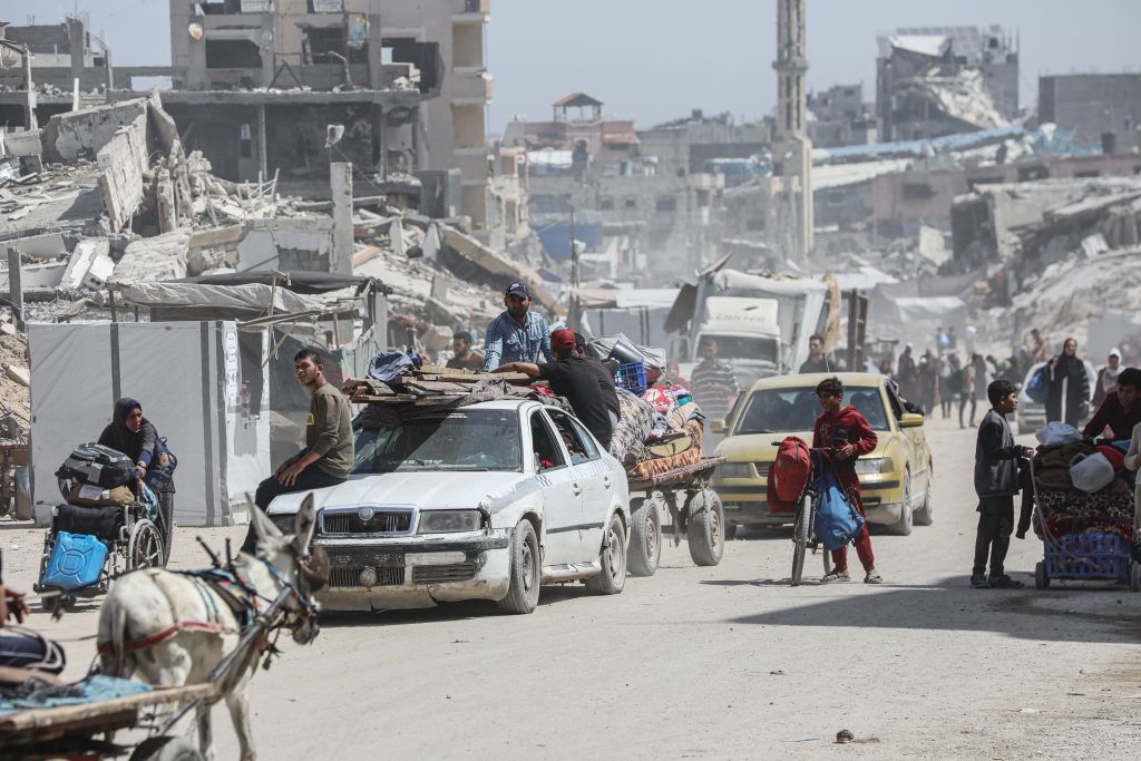 Palestinesi trasportano i loro averi mentre fuggono da Gaza City il 16 maggio 2025. (Foto: Omar Ashtawy/APA Images)
