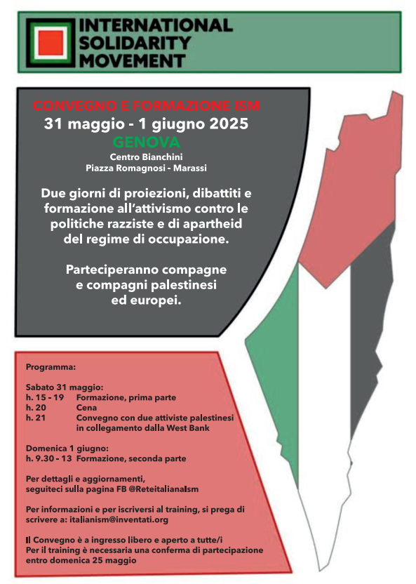 L’ISM (International Solidarity Movement) è un movimento internazionale nato nel 2001, che supporta la lotta di liberazione palestinese con la pratica della nonviolenza attiva.