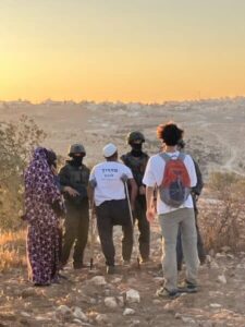 Ho soggiornato presso alcune famiglie a Masafer Yatta, sulle colline a sud di Hebron. È una delle comunità più vulnerabili della Cisgiordania, poiché vive sotto la costante minaccia di demolizione delle case. Lo stato di apartheid israeliano usa leggi arbitrarie come una scusa appena velata per distruggere i villaggi palestinesi, ad esempio la necessità di terreni per una zona di “addestramento” militare. Nel frattempo, i permessi di costruzione palestinesi vengono negati nel 99% dei casi.[10] La violenza e le intimidazioni dei coloni sono all’ordine del giorno qui, nel tentativo di cacciare i palestinesi dalle loro terre. Solo nelle ultime due settimane, ci sono stati numerosi attacchi da parte di coloni mascherati. Possono arrivare in qualsiasi momento, e ogni palestinese, giovani e anziani, viene trattato come un bersaglio legittimo. Molti sono stati ricoverati in ospedale a seguito di queste violente imboscate. Successivamente, l’esercito e la polizia israeliani arrivano e in genere non fanno nulla, se non contribuire alle molestie palestinesi, consentendo ai coloni di agire impunemente.