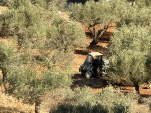 Una volta messe in sicurezza tutte le olive e le attrezzature per la raccolta, l’intero gruppo di attivisti solidali e i loro compagni palestinesi sono tornati in città per continuare la raccolta in un luogo diverso, fuori dalla visuale dei coloni violenti.