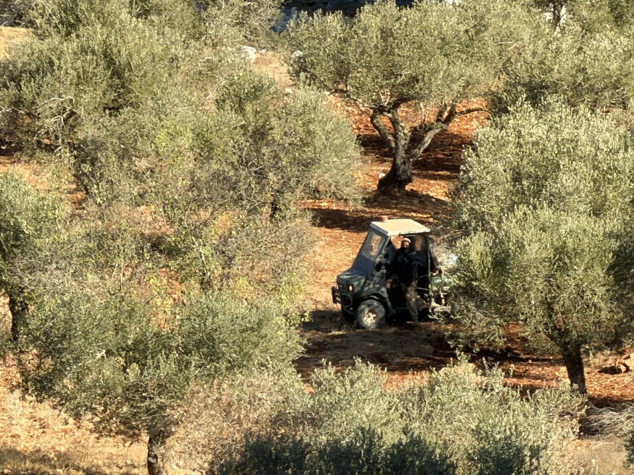 A breve distanza lungo la strada che si allontanava dall’uliveto, i veicoli si sono raggruppati e i palestinesi hanno iniziato a contarli, assicurandosi che nessuno fosse lasciato indietro. Gli attivisti solidali hanno accompagnato alcuni palestinesi a recuperare i teli di ulivo ancora vicini all’uliveto e i coloni sono stati visti tornare al loro avamposto illegale a bordo del quad con cui erano arrivati.