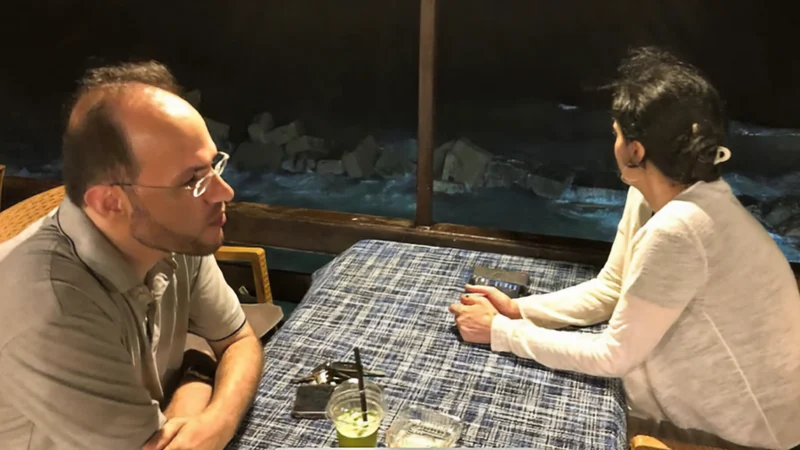 Refaat Alareer e Basma Ghalayini all’Al-Baqa Cafe a Gaza City, agosto 2022. (Immagine per gentile concessione dell’autore)
